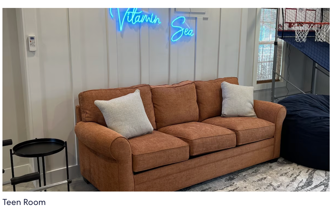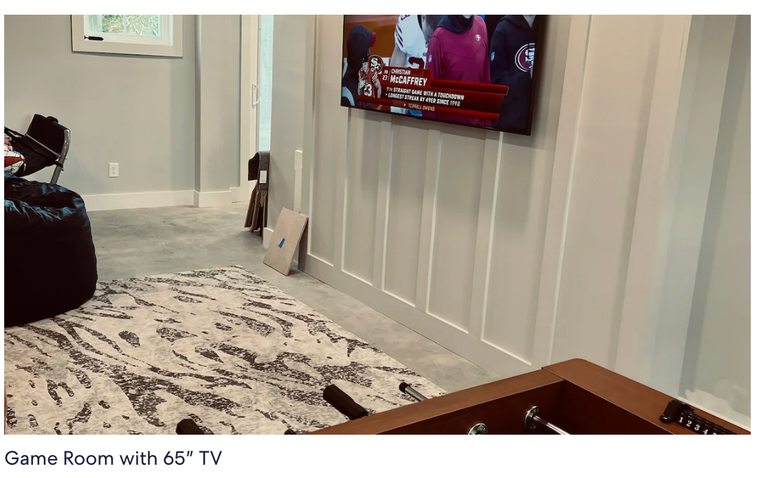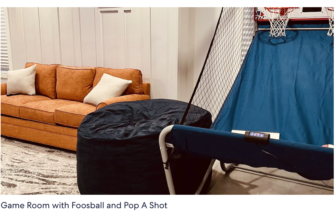 * Large ground floor game room with Foosball, Pop a shot & 65″ Smart TV