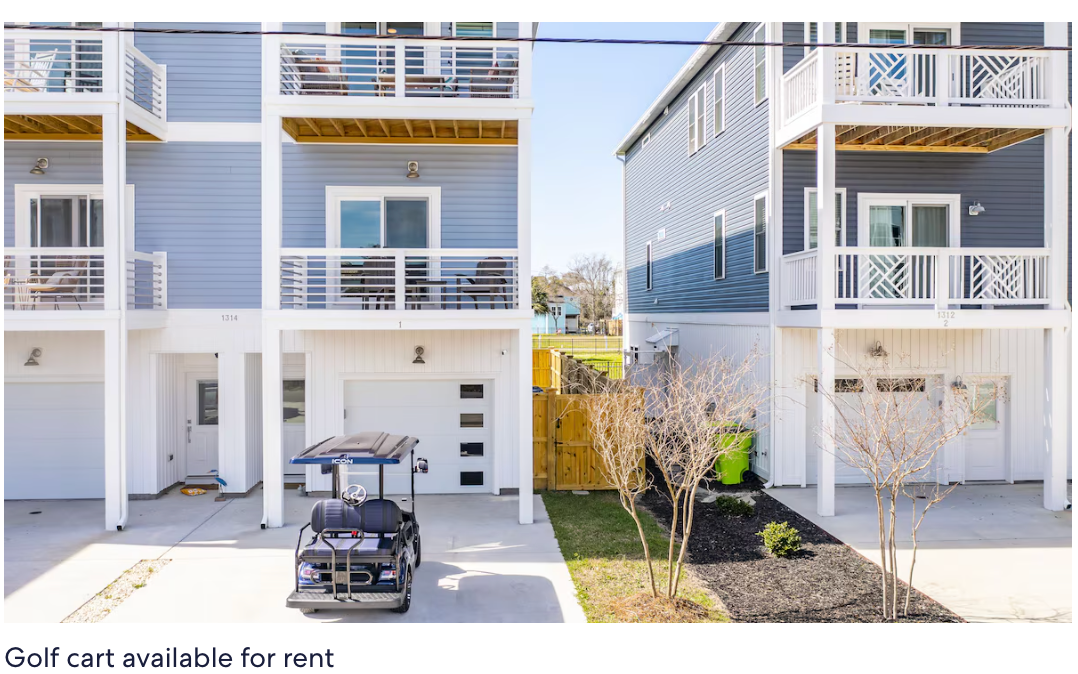 Brand new modern townhome with high end furniture. 2 blocks from the beach with easy beach access. GOLF CART included for free!Essentials such as body wash, shampoo, conditioner, towels, linens and pillows included. Outdoor shower and two deck areas. Plenty of beach chairs and beach accessories.